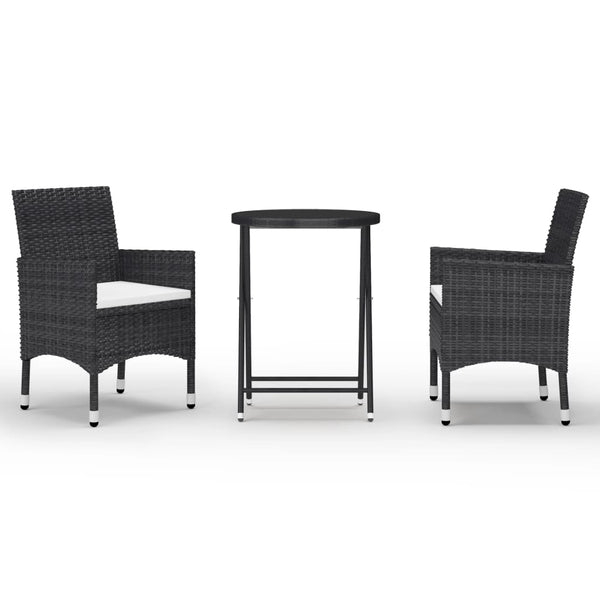 Musta 3-osainen bistrosarja polyrottinki ja karkaistu lasi