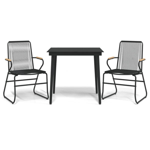 Musta 3-osainen ulkoruokailuryhmä pvc rottinki