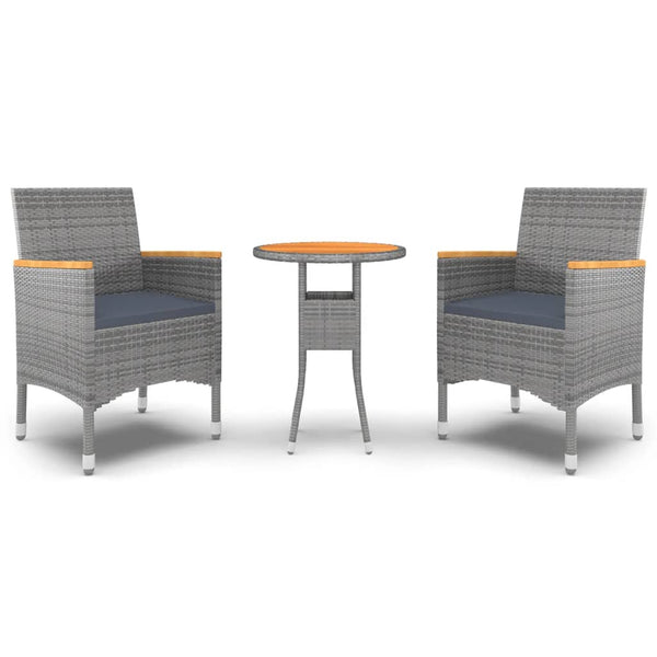 Harmaa 3-osainen ulkoruokailuryhmä polyrottinki