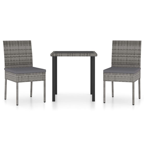 Harmaa 3-osainen ulkoruokailuryhmä polyrottinki