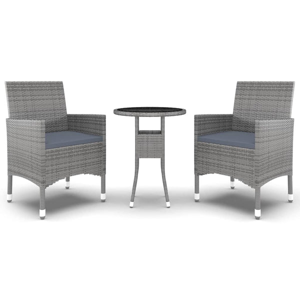 Harmaa 3-osainen ulkoruokailuryhmä polyrottinki