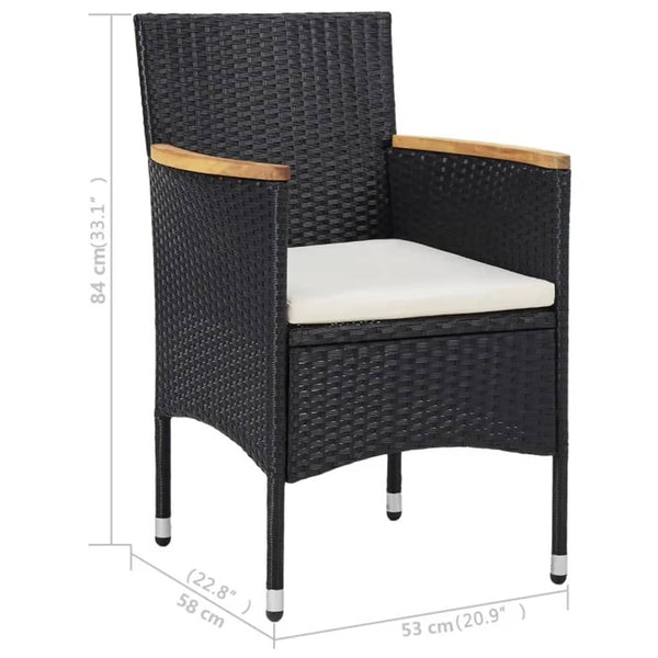 Musta 3-osainen ulkoruokailuryhmä polyrottinki ja puu