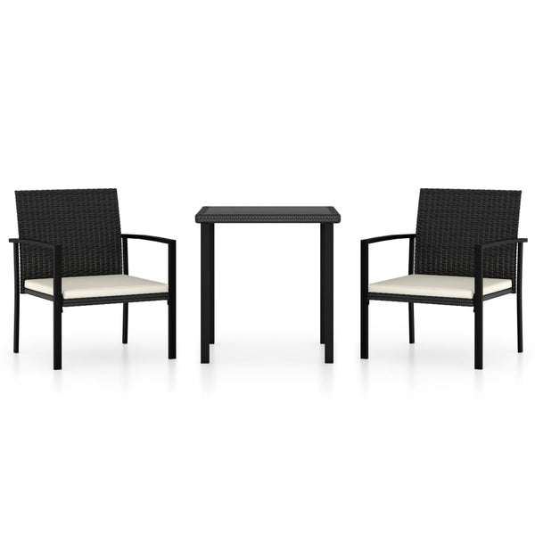 Musta 3-osainen ulkoruokailuryhmä polyrottinki