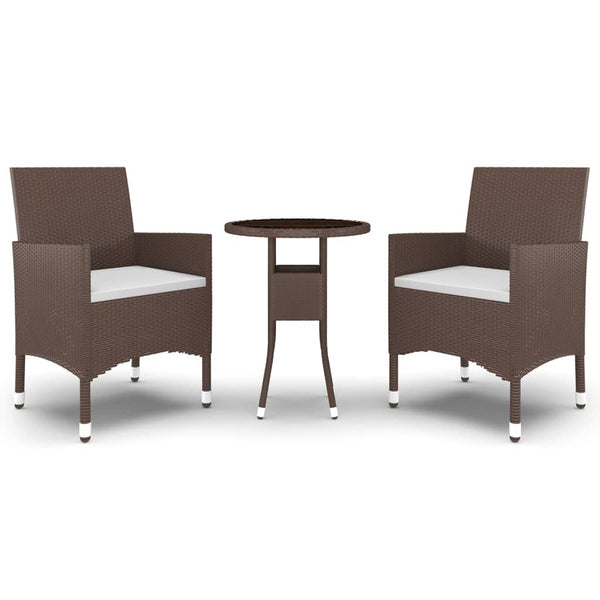 Ruskea 3-osainen ulkoruokailuryhmä polyrottinki