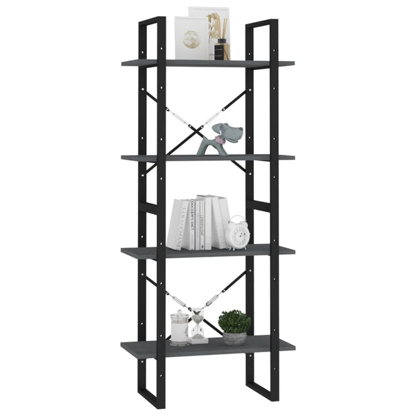 Harmaa 4-tasoinen kirjahylly 60x30x140cm mänty