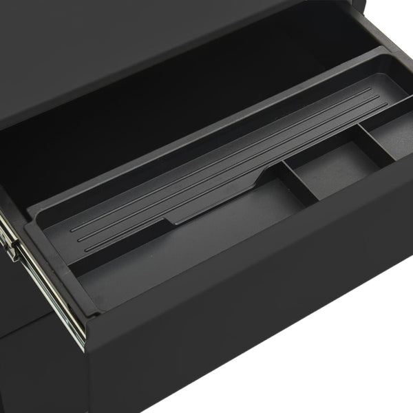 Teräksestä valmistettu toimistokaappi on kestävä ja todella helppo puhdistaa. Kolmella laatikolla ja lukoilla varustettu arkistokaappi antaa sinun järjestää dokumenttisi eri kategorioihin ja samalla voit pitää ne turvassa. Jokaisessa laatikossa on yksi irrotettava ripustustanko, jotka voidaan vapaasti yhdistää säilyttämään eri kokoisia kansioita. Siirrettävässä kaapissa on kynätarjotin, joten työpöytäsi pysyy siistimpänä. Kolmeosaisilla kuulalaakerikiskoilla varustetut laatikot avautuvat ja sulkeutuvat sulavasti, jopa suuren taakan alla laatikot avautuvat kokonaan.