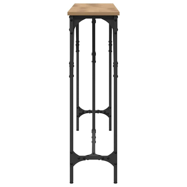 Tää teollinen konsolipöytä yhdistää tyylin ja käytön, ja se on täydellinen valinta niille, jotka arvostaa muodon ja funktion yhdistelmää. Sen teollinen design ja suorakaiteen muoto, kestäville materiaaleille, luo tyylikkään pinnan olohuoneeseen. Asettamalla sen seinää vasten, tää konsolipöytä toimii hienona keskipisteenä, jossa rautakehys yhdistyy tekniseen puuhun. Voit käyttää sitä suosikkikoristeiden esittelyyn tai säilytyksen lisänä, parantaen sekä tyyliä että käytännöllisyyttä.