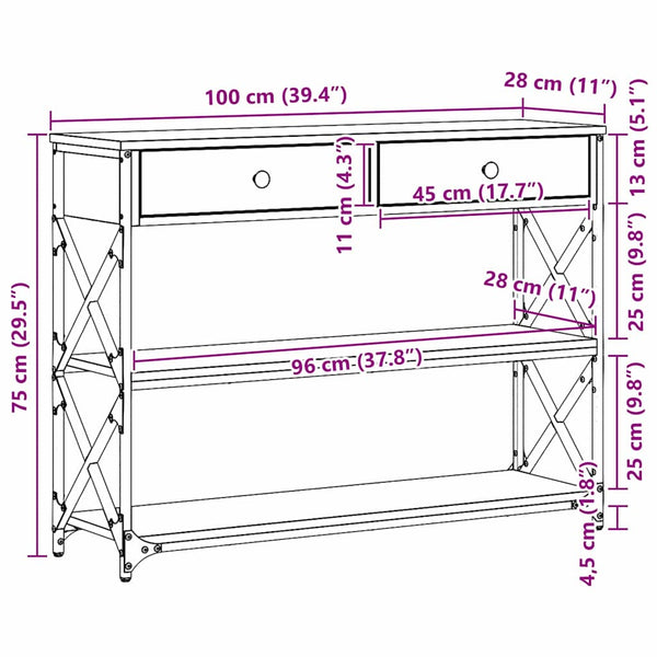 Artesaani tammi konsolipöytä laatikon kanssa 100x28x75cm
