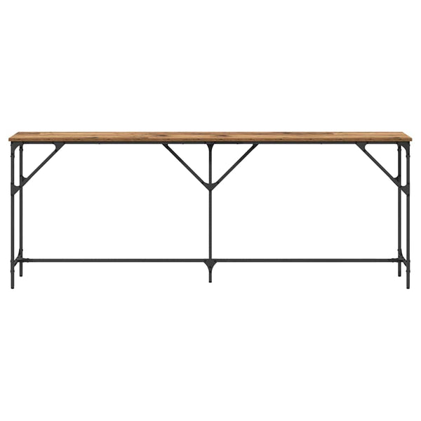 Tää teollinen konsolipöytä yhdistää tyylin ja käytön, ja se on täydellinen valinta niille, jotka arvostaa muodon ja funktion yhdistelmää. Sen teollinen design ja suorakaiteen muoto, kestäville materiaaleille, luo tyylikkään pinnan olohuoneeseen. Asettamalla sen seinää vasten, tää konsolipöytä toimii hienona keskipisteenä, jossa rautakehys yhdistyy tekniseen puuhun. Voit käyttää sitä suosikkikoristeiden esittelyyn tai säilytyksen lisänä, parantaen sekä tyyliä että käytännöllisyyttä.