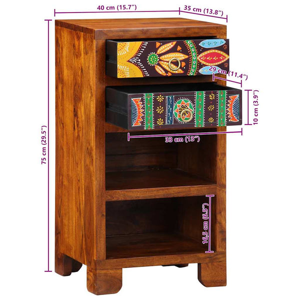 Tämä tyylikäs päätypöytä yhdistää perinteisen viehätyksen moderniin yksinkertaisuuteen, tehden siitä monikäyttöisen lisän moneen tilaan kodissasi. Huolellisesti valmistettu pöytä tuo esiin sekä tyyliä että käytännöllisyyttä. Sen moniväriset laatikot tuovat eloa akaasiapuun syvälle ruskealle sävylle. Tämä pöytä on täydellinen paikka lamppuille, juomille tai puhelimille, olipa se makuuhuoneessa tai olohuoneessa. Sen ajaton muotoilu istuu täydellisesti mihin tahansa sisustukseen ja takaa kestävän käytön.