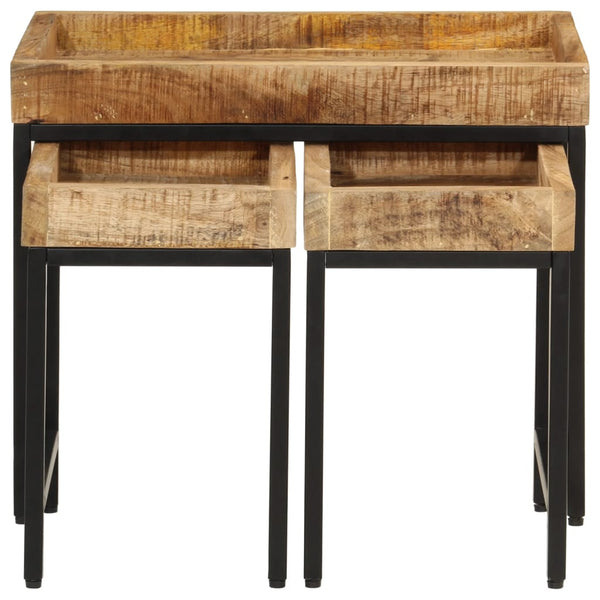 Sarjapöydät 3 kpl karkea mangopuu ja rauta