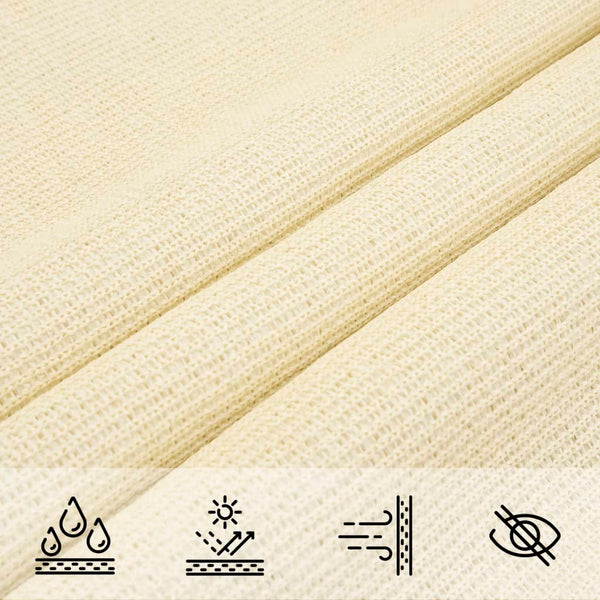 Aurinkopurje on valmistettu 100-prosenttisesta HDPE:stä (suurtiheyspolyeteeni) ja se suojaa sinua suoralta auringonvalolta, mutta sallii ilman kiertää ja läpäisee vettä. HDPE on erityisesti käsitelty, jotta se ei homehdu ja jotta se sietää UV-säteitä.