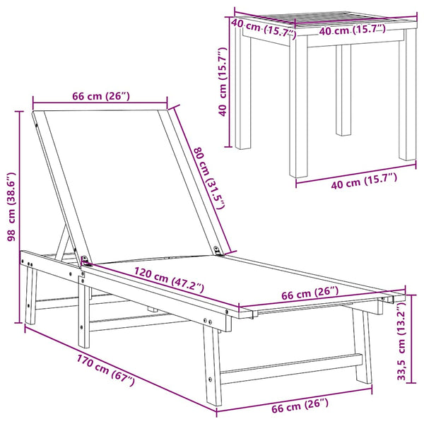Harmaa aurinkotuoli pöydällä akasiapuu ja textilene