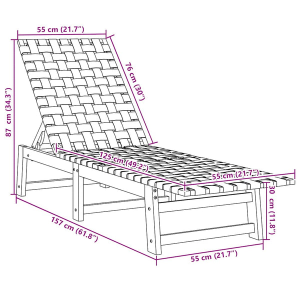 • Nauhamainen muotoilu: Aurinkotuolin istuinosa ja selkänoja on muotoilu nauhamaiseksi mukavuuden, tyylikkyyden ja hengittävyyden takaamiseksi.