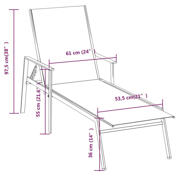 Tämä tyylikäs ja säädettävä aurinkotuoli on täydellinen valinta, jotta voit rentoutua ja nauttia päivästäsi ulkotilassa.