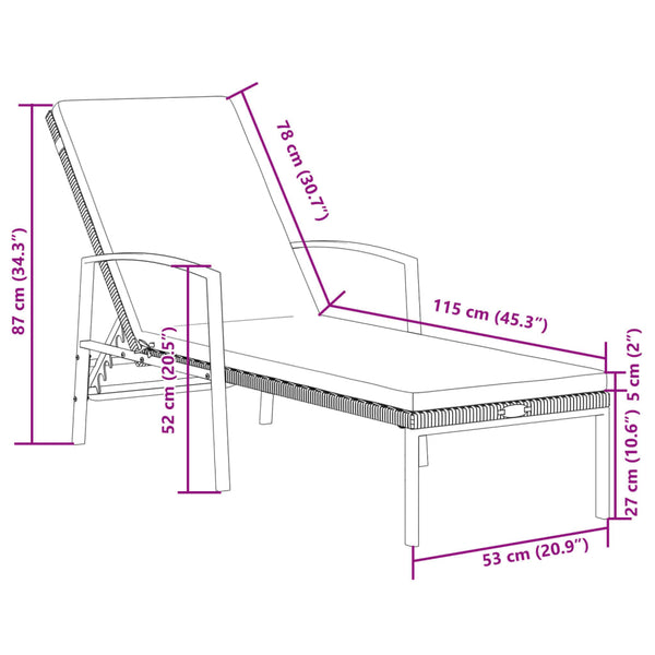 Aurinkopedissä on tukeva teräsrunko, joka tekee siitä erittäin kestävän. Sen leveät käsinojat ja korkea selkänoja lisäävät visuaalista viehätystä sekä istuma- ja makuumukavuutta. Selkänoja on säädettävissä niin, että voit lukita lepotuolin haluttuun asentoon. Pöytä mahdollistaa puhelimen, aurinkolasien, juomien ja muiden pikkutavaroiden ulottuvilla pitämisen. Se on helppo puhdistaa ja hoitaa.