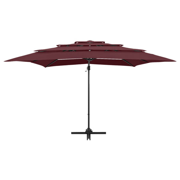 Viininpunainen aurinkovarjo 250x250cm 4-tasoinen, alumiinitanko