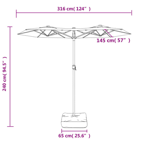 Tyylikäs kaksipäinen aurinkovarjo on täydellinen luomaan varjoa ja suojaamaan auringon haitallisilta UV-säteiltä.