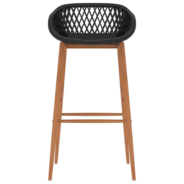 Pöytälevy on valmistettu helposti puhdistettavasta MDF:stä. Jauhemaalattu metallirunko lisää pöydän vakautta ja vankkuutta. Baarijakkaroissa on ergonomisesti muotoiltu istuin ja integroitu matala verkkotyylinen selkänoja. Ne on valmistettu vankasta PP:stä ja vahvoista metallijaloista, joissa on siirtokuvalla tehty puutyyli. Nämä baarituolit ovat vankkoja ja kestäviä.