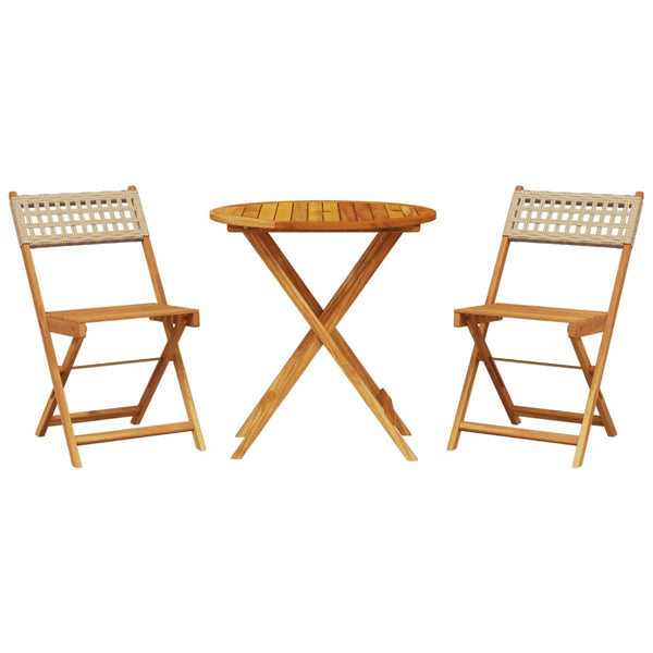 Beige bistrosetti 3-osainen, polyrottinki ja akasiapuu