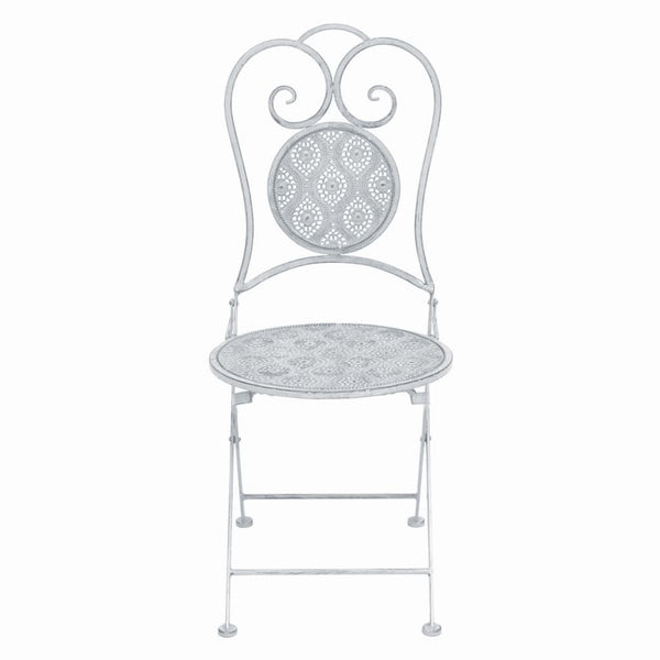Tämä bistrosarja on valmistettu jauhemaalatusta teräksestä, joka on säänkestävä ja pitkäikäinen. Kauniit käsinmaalatut koristeet ja ruosteinen pinnoite tekevät sarjasta katseenvangitsija missä tahansa puutarhassa, terassilla tai parvekkeella. Tämä perinteinen puutarhan huonekalusarja on helppo puhdistaa kostealla kankaalla. Tuolit on helppo taittaa kokoon säästämään tilaa, kun ne eivät ole käytössä.