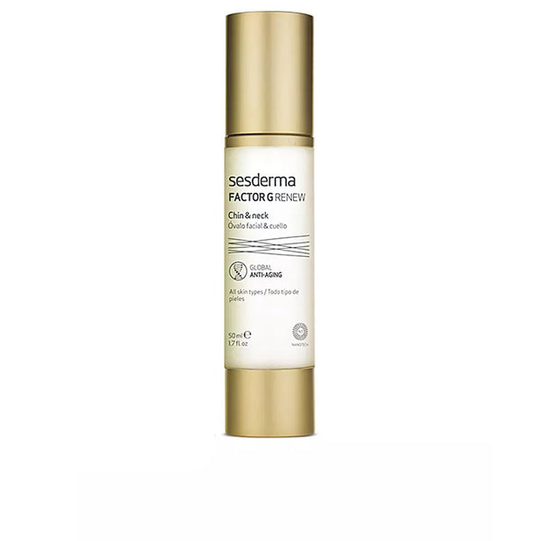 SESDERMA Factor g renew kasvojen & kaulan muotoilu 50 ml on maailmanlaajuisesti tunnettu anti-aging voide, joka muotoilee kasvojen piirteitä samalla kiristäen kaulan ja dekolteen ihoa. Tämä voide on rikastettu tehokkaalla sekoituksella kasvutekijöitä, jotka edistävät kollageenin ja elastiinin tuotantoa, parantaen siten ihon joustavuutta ja kimmoisuutta. Se määrittelee kasvojen piirteitä, vähentää ryppyjen näkyvyyttä ja antaa kohottavan vaikutuksen kaulalle ja dekolteelle.