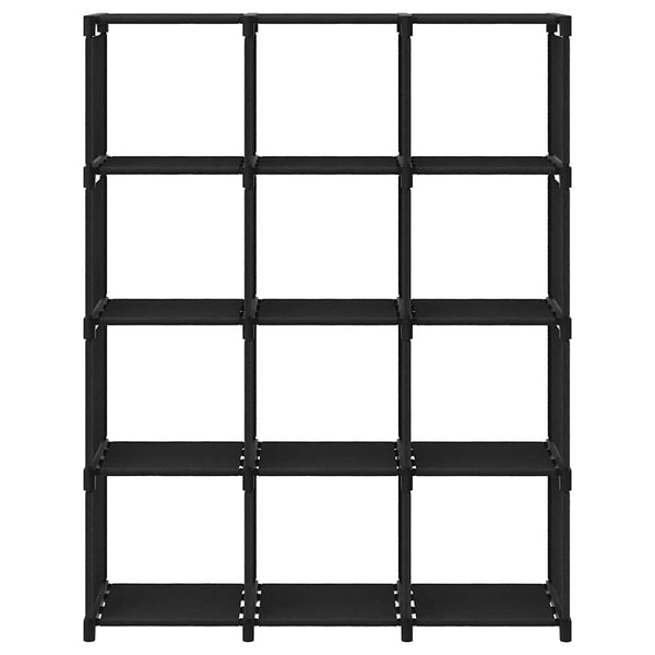 Musta esittelyhylly 103x30x141cm 12 kuution, kangas
