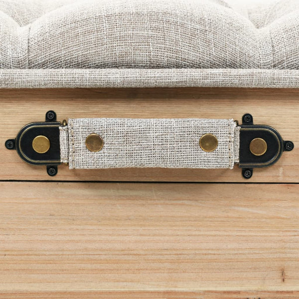 Mukava penkki on valmistettu täydestä kuusesta ja sen pehmustettu istuin on verhoiltu kankaalla. Siinä on reilusti tilaa erilaisten esineiden poissa silmistä, mutta samalla käden ulottuvilla pitämiseen. Sen tyylikkäät teräsjalat lisäävät sen rustiikkista viehätysvoimaa.