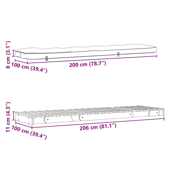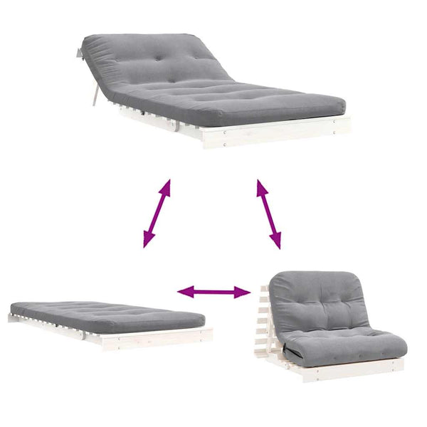 Valkoinen futon vuodesohva patjalla 100x206x11cm mänty
