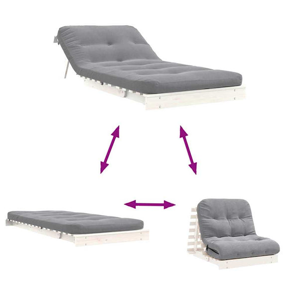 Valkoinen futon vuodesohva patjalla 80x206x11cm mänty