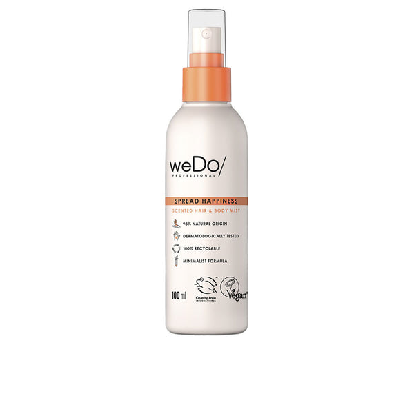 Wedo Spread Happiness -suihke tuo iloa päivääsi sekä tuoksullaan että hoitavilla ominaisuuksillaan. Tämä 100 ml monikäyttöinen suihke on suunniteltu sekä hiuksiin että vartaloon, jättäen raikkaan ja miellyttävän tuoksun. Luonnolliset ainesosat kosteuttavat ja ravitsevat, tehden ihosta pehmeän ja hiuksista kiiltävät. Sopii kaikille iho- ja hiustyypeille.
