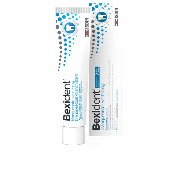 - Valmistaja: ISDIN - Tuotteen nimi: Bexident Whitening päivittäinen hammastahna - Tilavuus: 125 ml - Suositeltu käyttö: kolme kertaa päivässä - Sisältää valkaisevia ainesosia - Suojaa ja vahvistaa hampaita - Ehkäisee reikiintymistä - Raikas mintun makuAINESOSAT