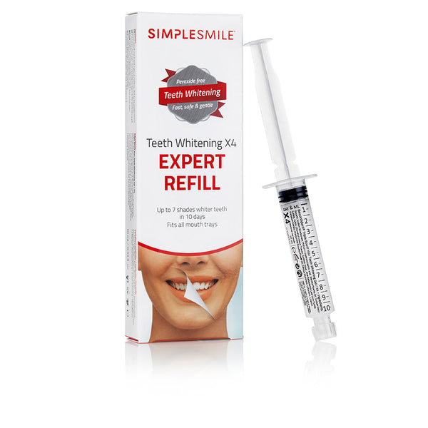 Beconfident Simplesmile® Hampaiden Valkaisu X4 Expert Refill 1 U on tehokas täyttöpakkaus hampaiden valkaisuun kotona. Sisältää neljä lisäannosta peroksidivapaata valkaisuainetta, joka on hellävarainen hampaille ja ikenille. Tuote poistaa tehokkaasti värjäytymiä ja kirkastaa hymysi jopa useita sävyjä. Helppokäyttöisyys ja nopeat tulokset tekevät tästä tuotteesta suositun valinnan hampaiden valkaisuun.
