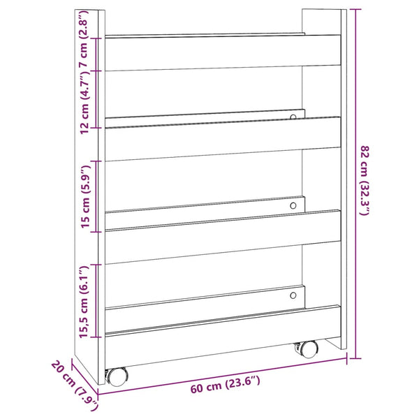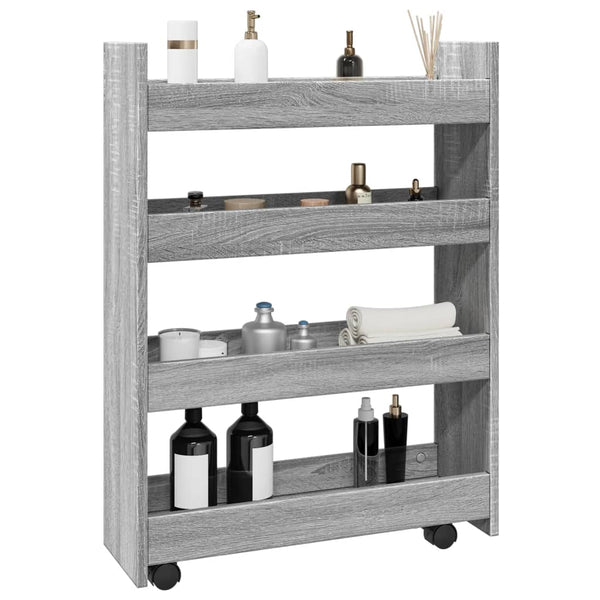 Harmaa kapea säilytysvaunu 4-kerrosta sonoma puinen
