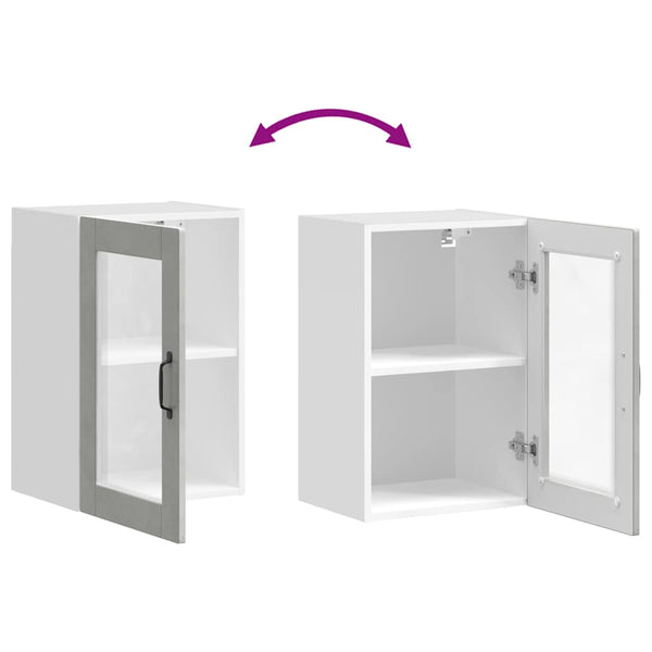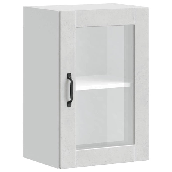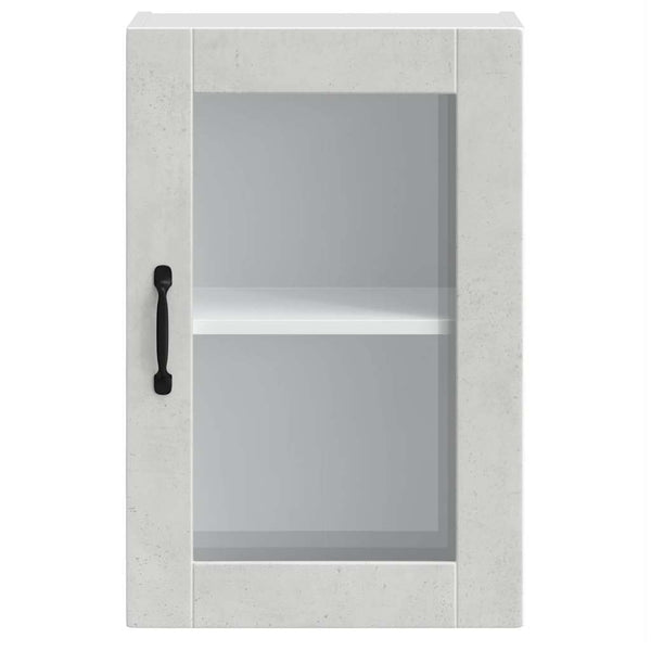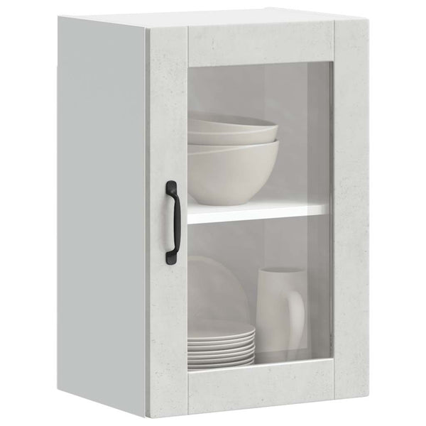 Betoninharmaa keittiön seinäkaappi lasiovella porto