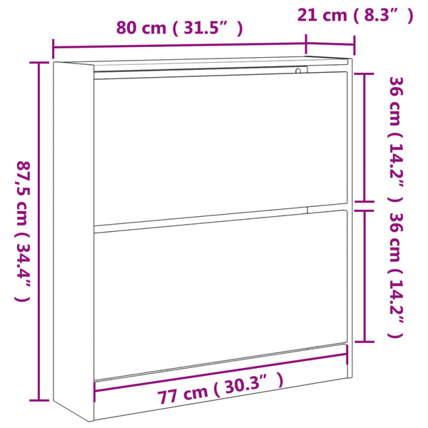 - Runsaasti säilytystilaa: Kenkätelineessä on kaksi kääntölaatikkoa, jotka tarjoavat runsaasti tilaa kenkien pitämiseen kättesi ulottuvilla ja hyvässä järjestyksessä.