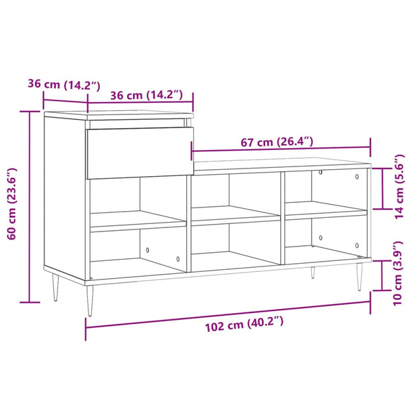 Harmaa kenkäkaappi 102x36x60cm puinen