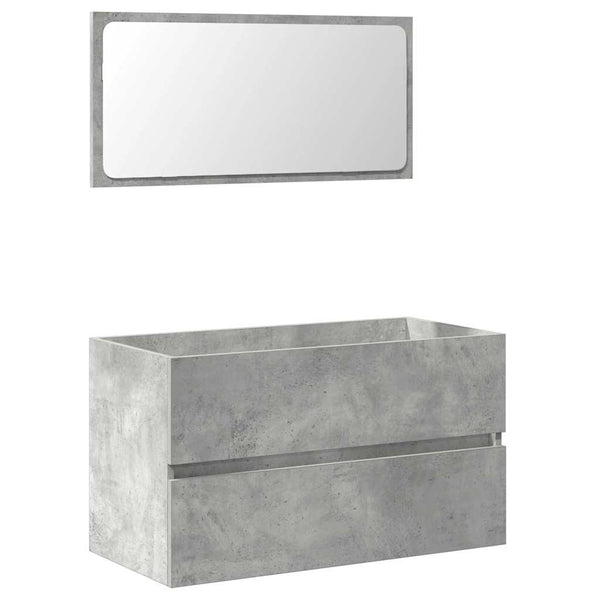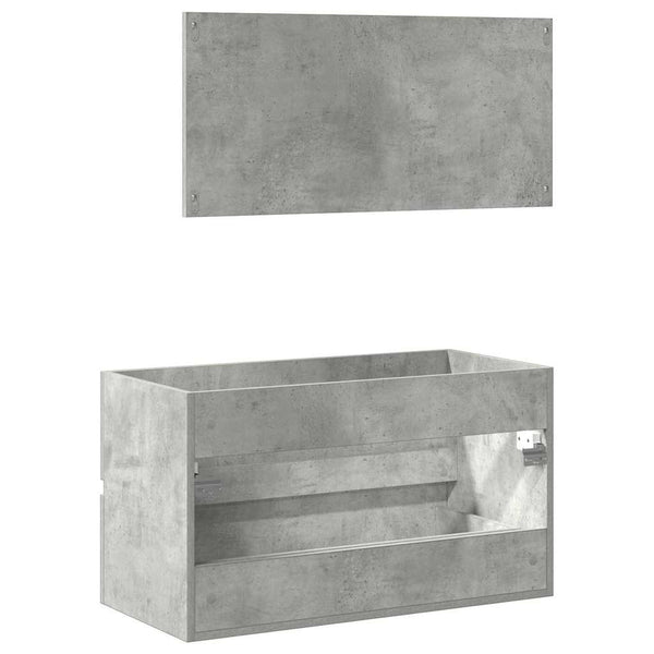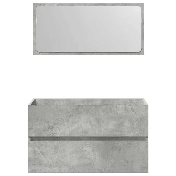 Betoninharmaa kylpyhuoneen kaappi peilillä puinen
