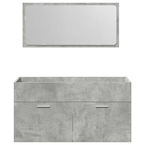 Betoninharmaa kylpyhuoneen kaappi peilillä puinen