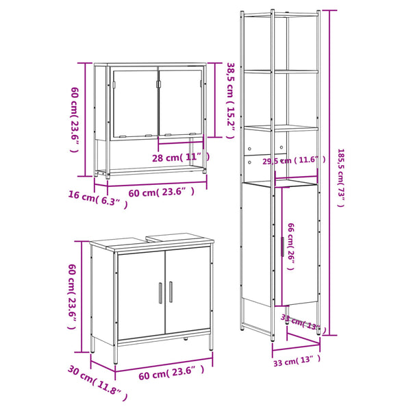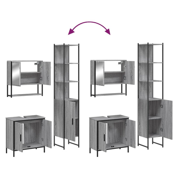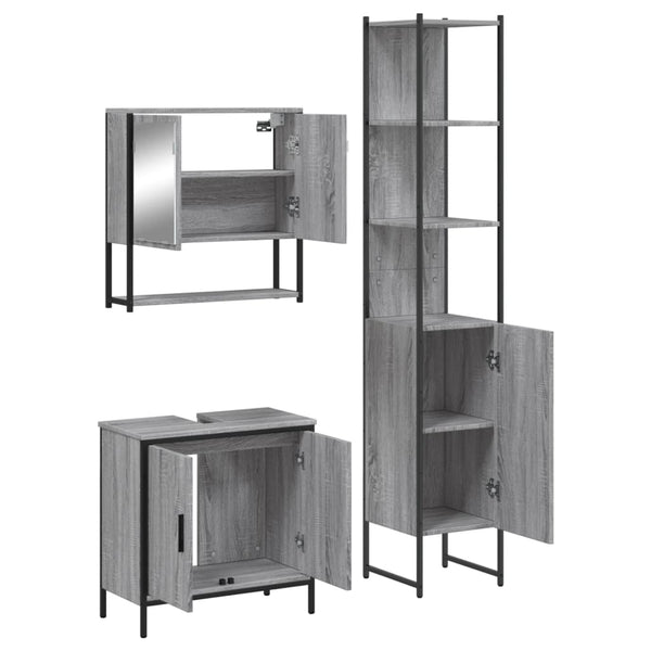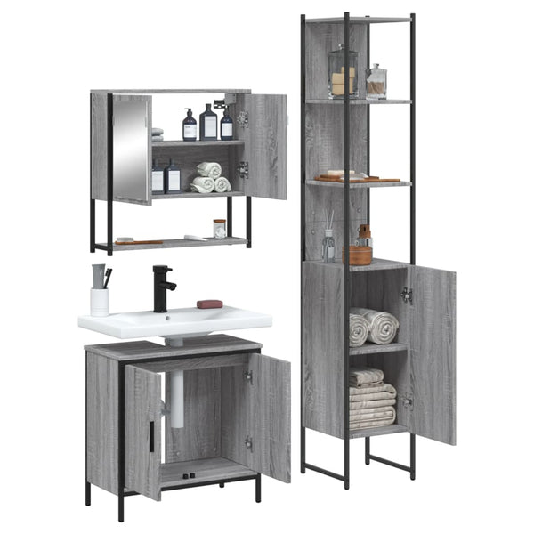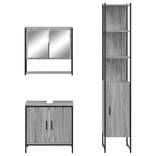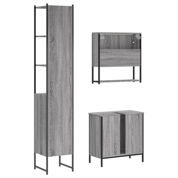 Harmaa kylpyhuoneen kalustesarja 3-osainen, sonoma puinen