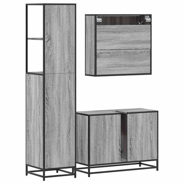 Harmaa kylpyhuoneen kalustesarja 3-osainen sonoma puinen