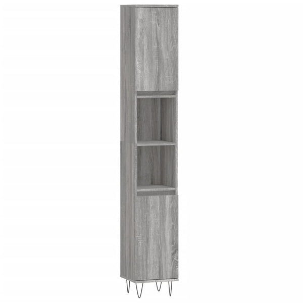 Harmaa kylpyhuoneen kalustesarja Clelia (3-osainen, sonoma puinen)