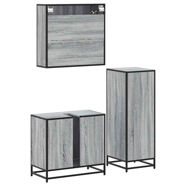 Harmaa kylpyhuoneen kalustesarja 3-osainen, sonoma puinen
