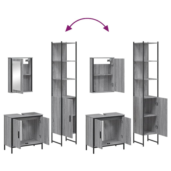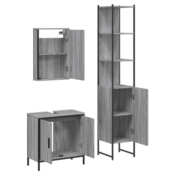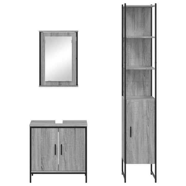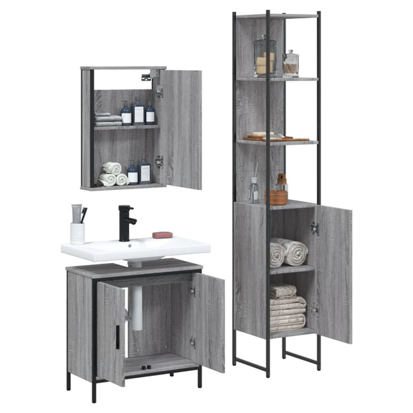 Harmaa kylpyhuoneen kalustesarja 3-osainen, sonoma puinen