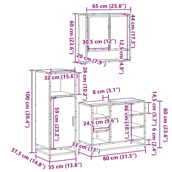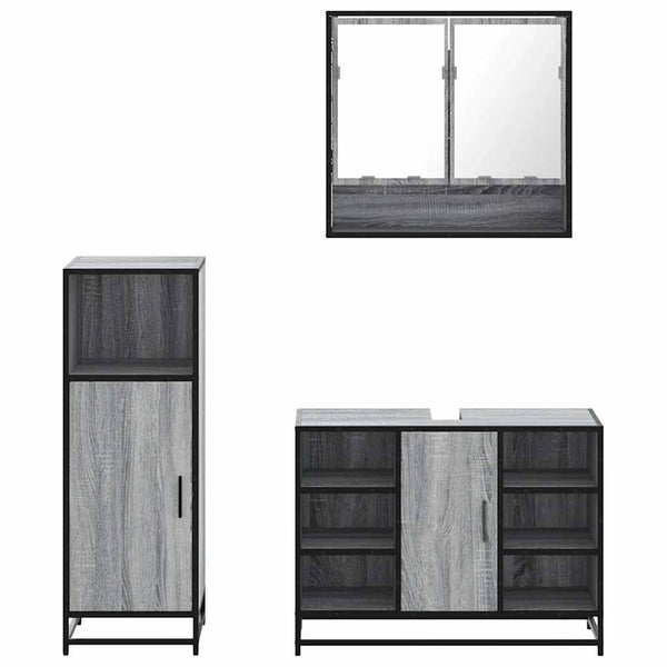 Harmaa kylpyhuoneen kalustesarja 3-osainen sonoma puinen