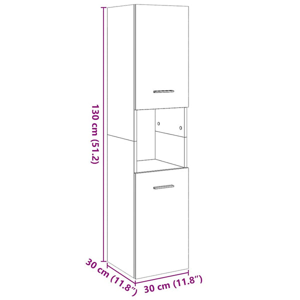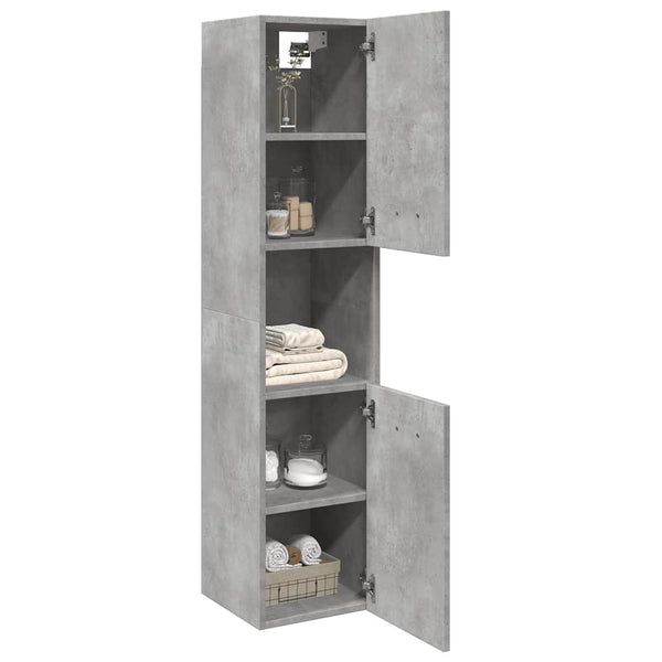 Betoninharmaa kylpyhuoneen seinäkaappi 30x30x130cm lastulevy