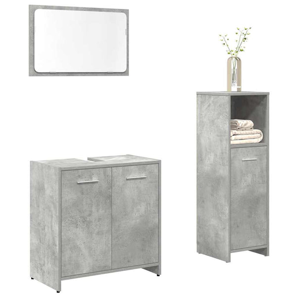 Betoninharmaa kylpyhuonekalustesarja 3-osainen, puinen
