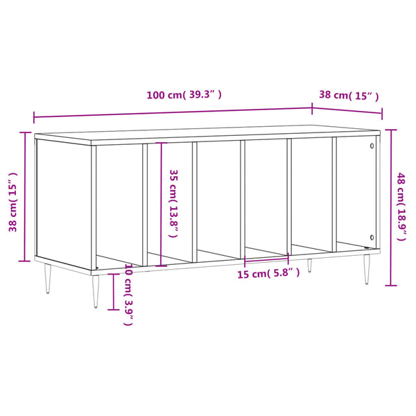 Betoninharmaa lp-levyjen säilytyskaappi 100x38x48cm puu