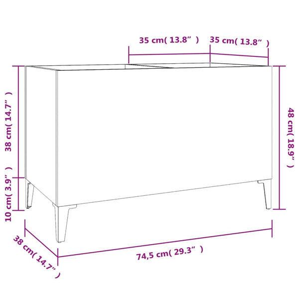 Betoninharmaa lp-levyjen säilytyskaappi 74,5x38x48cm puu