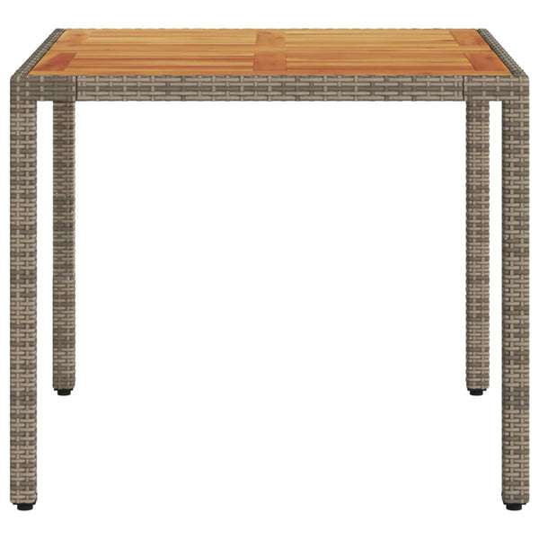 Harmaa puutarhapöytä 90x90x75cm akasiapuu ja polyrottinki